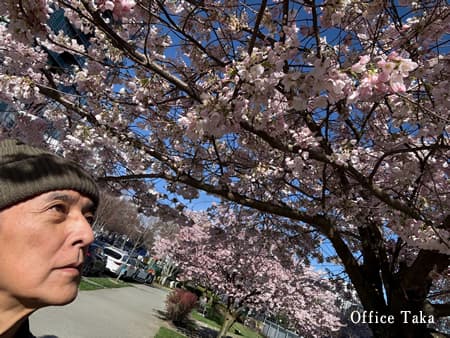カーテンのない日常に慣れてないので、ホテルの部屋にロールカーテンが付いていることにほっとしている。カナダの街中の景色もピンクに色づき始めた。カナダでも桜が見られるなんて嬉しいかぎりだ。
